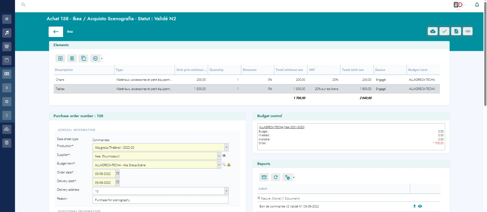With #DIESE, keep your budget commitments closely aligned with your projects. From contract or purchase order creation to consolidated analysis of expenses and revenue, you get a complete workflow connected to your other management tools.