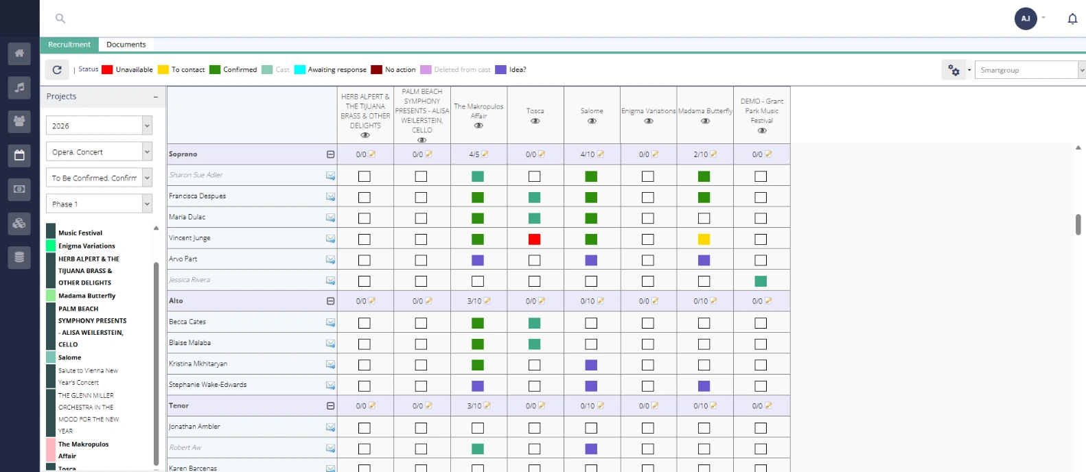 Detailed casting Assign musicians by work, by section, or even by position.