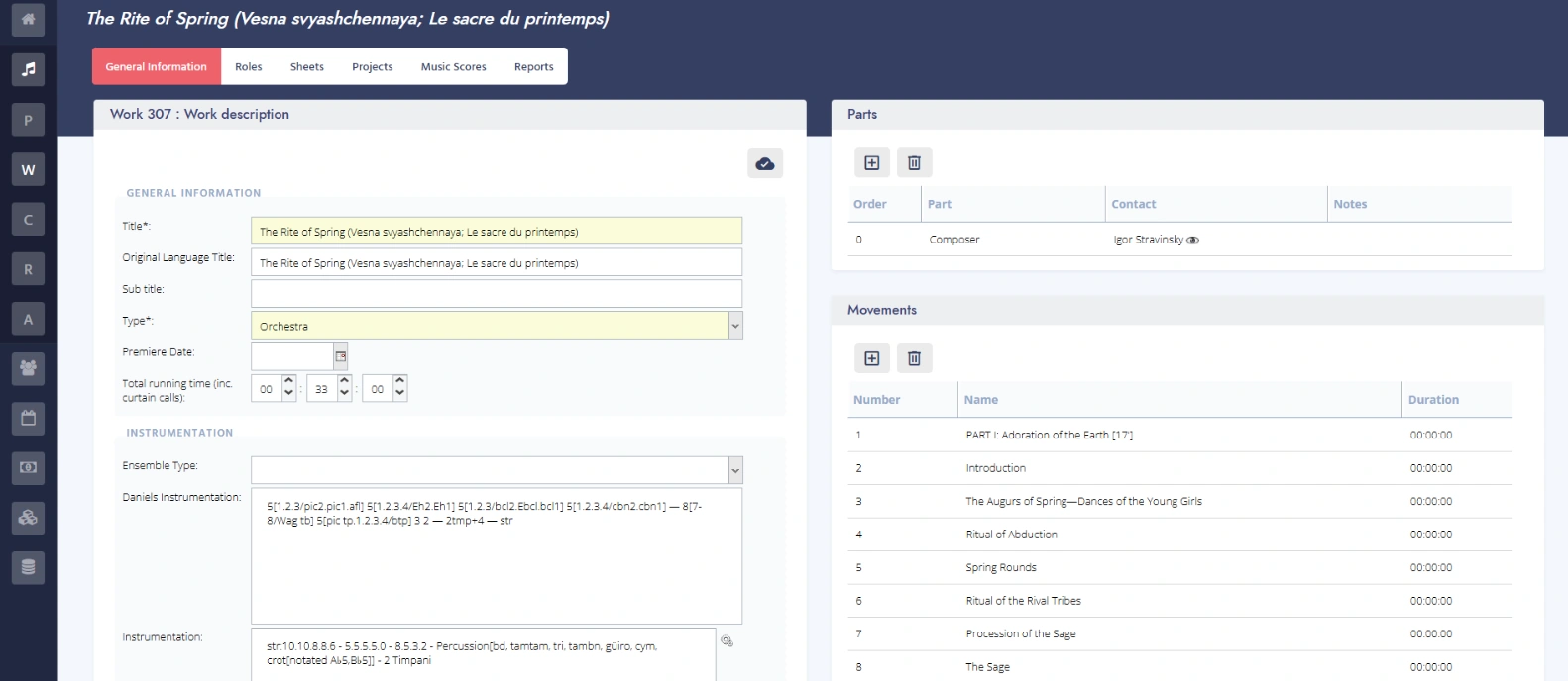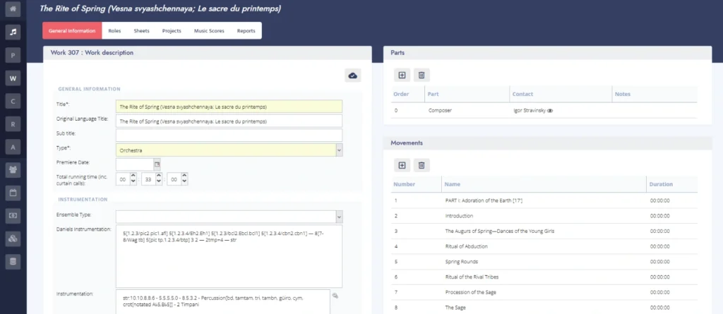 Smart pre-filling Musician requirements are automatically generated based on the work’s instrumentation.
