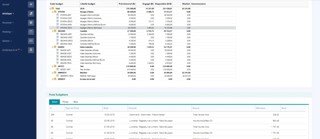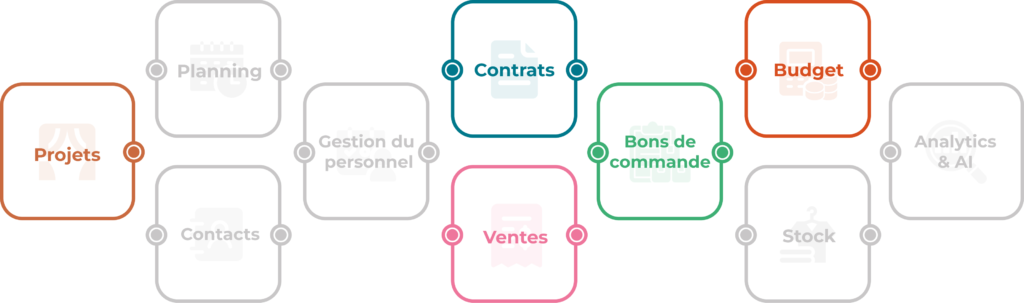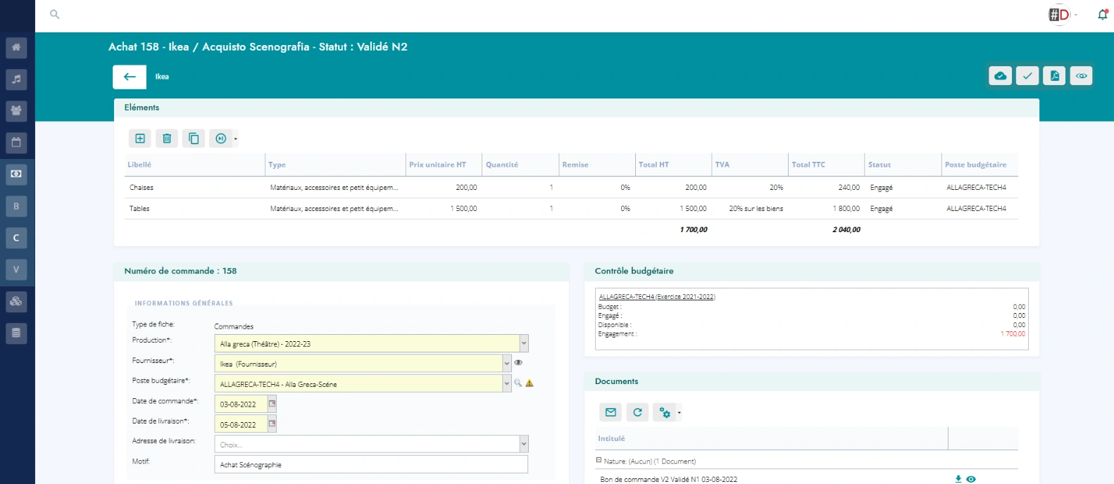 • Suivi consolidé Toutes les données issues des contrats, commandes ou ventes alimentent automatiquement le budget.